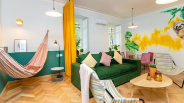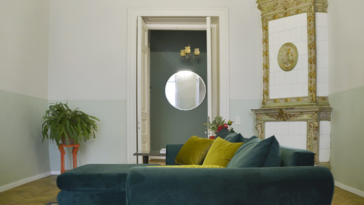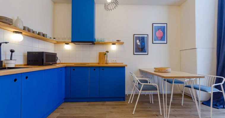 ინტერიერში ყურადღებას იქცევს ქართული რეალობისთვის ნაკლებად დამახასიათებელი თამამი ფერების არსებობა. სამზარეულოში გვხვდება ულამაზესი მკვეთრი ლურჯი ფერი, მისაღებ ზონაში აქცენტი გაკეთებულია ხასხასა ყვითელ სავარძელზე, საძინებელში ვარდისფერი და ცისფერი გამა ფიგურირებს, ხოლო აბაზანა ნარინჯისფერშია გადაწყვეტილი.