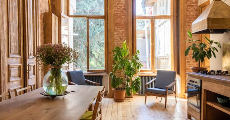 საკმაოდ საინტერესოა ბინის ინტერიერი, რომელშიც გვხვდება ხის მასალების, აგურისა და სხვადასხვა დიზაინ ელემენტების ჰარმონიული სინთეზი.
