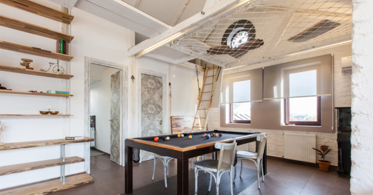 ეს საცხოვრებელი ბინა ე.წ. სტალინური სახლის სხვენის რეკონსტრუქციის შედეგია. პროექტის ავტორებმა მასში ჭერის სიმაღლე უცვლელი დატოვეს და 4 მეტრიან სივრცეში ლოფტის ტიპის ინტერიერი შექმნეს.