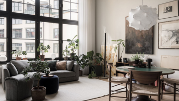 რაც შეეხება ინტერიერს, ის მინიმალისტურ სტილშია გადაწყვეტილი და მასში ხის ელემენტები, ე.წ. შიშველი აგურის კედლები და ვინტაჟური ავეჯი და აქსესუარები ფიგურირებს. ბინაში უხვად გვხვდება ბუნებრივი განათება, რაც ღია ფერებისა და სამხრეთით მდებარე დიდი ფანჯრის ხარჯზე იქნა მიღწეული.