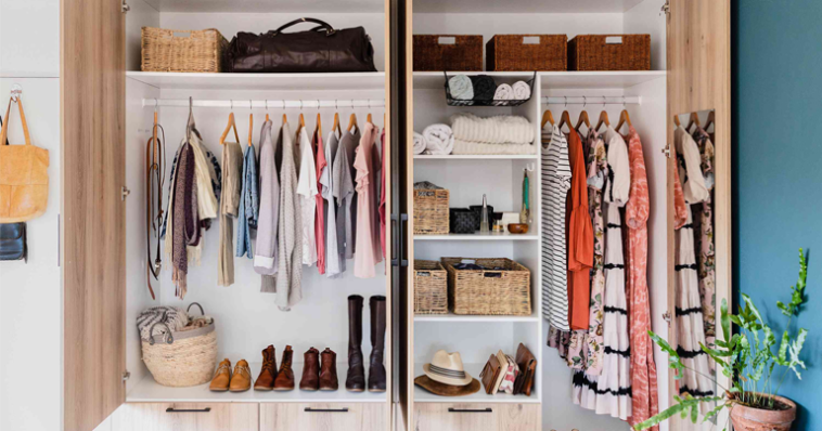 - ძირითადი სივრცეები იმ სამოსისთვის გამოიყენეთ, რომელსაც ხშირად იცვამთ. დაყავით ტანსაცმელი სეზონების მიხედვით – ზაფხულში ზამთრის სამოსი შეინახეთ, ზამთარში კი — ზაფხულის. მცირე სივრცის შემთხვევაში ადგილის დაზოგვასთან ერთად, ეს წესრიგის შენარჩუნებაშიც დაგეხმარებათ.