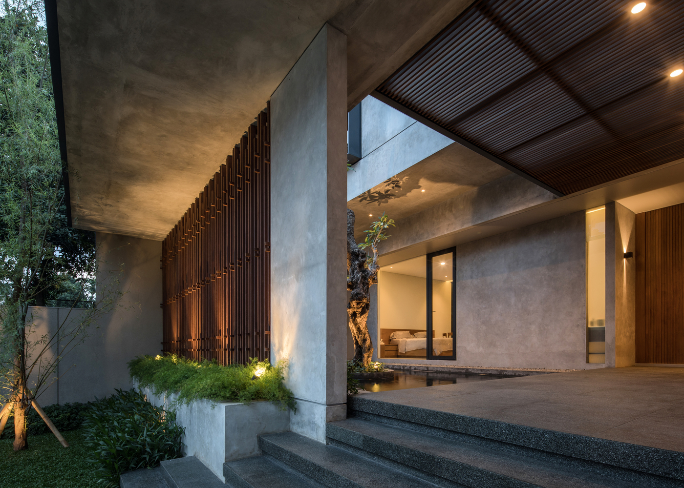 ეს მონაცრისფრო, ყუთისებრი კონტრუქციის მქონე სახლი ინდონეზიაში, ქალაქ ბანდუნგში მდებარეობს.  თავისი ვიზუალით – ცემენტის მასალითა და გამოკვეთილი კუთხეებით – ის საოცრად გამოირჩევა ამავე ქუჩაზე მდებარე სხვა ელიტური და ტრადიციული სახლებისგან. მისი ფასადი ერთობ ჰარმონიული და მკაცრია – გალვანიზებული რკინის, ცემენტის ყუთებისა და დამუშავებული ხისგან შედგება და დინამიკურ კომპოზიციას ქმნის.