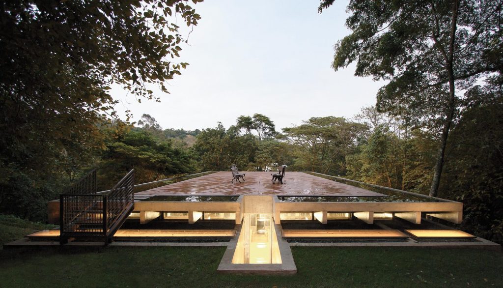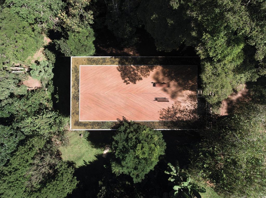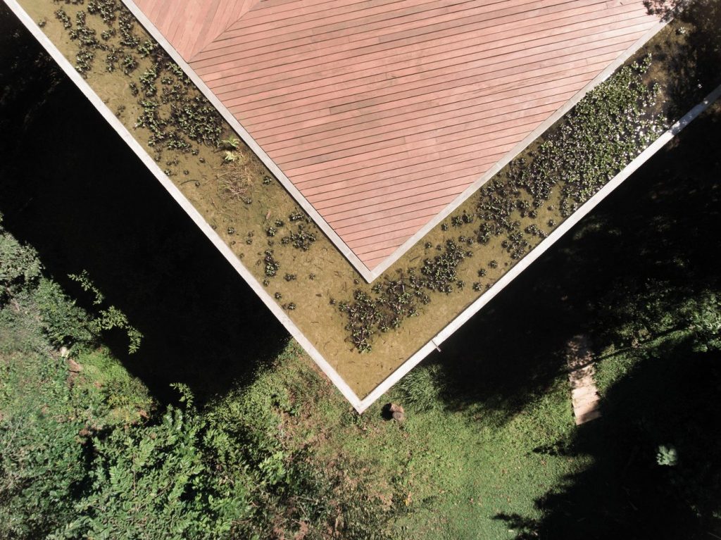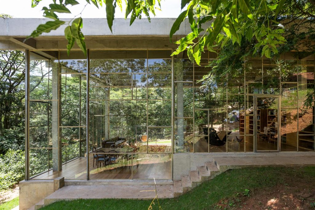 200 კვადრატული მეტრი ფართობის სახლი სამი დონისგან შედგება: პირველ, ყველაზე მაღალ დონეზე საძინებლები მდებარეობს, შემდეგ დონეზე ლექტორის სტუდიაა განთავსებული, ყველაზე ბოლო, დაბალ დონეზეა საერთო სივრცე და სამზარეულო, რომელიც წინ მდებარე ტყეს გადაჰყურებს. ეს სივრცე სახლის ყველაზე ნათელი და ხილვადი ნაწილია. მთლიანად მიწაშია მოქცეული დამხმარე სათავსოები და სველი წერტილები, ხოლო აბაზანებში განათება ჭერში მდებარე ღიობებიდან ჩამოდის. სახლის ბეტონის კონსტრუქცია შემსრულებლებმა არქიტექტორების სრული მეთვალყურეობის ქვეშ, ერთ დღეში ჩამოასხეს. ხე, რომელიც პროექტში არის გამოყენებული – Garapeira wood, საკმაოდ იშვიათი ჯიშია. ფასადის ვიტრაჟები კი მე-20 საუკუნის რკინის პროფილების ტექნოლოგიით არის გაკეთებული.