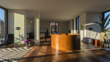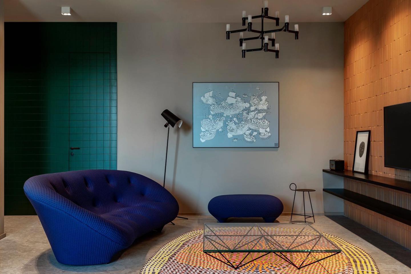 ბინის საერთო ფართობი 116 კვადრატულ მეტრს შეადგენს და მასში გვხვდება სტუდიოს ტიპის გაერთიანებული სამზარეულო და მისაღები ზონა, ორი საძინებელი და ერთი სველი წერტილი. მიუხედავად იმისა, რომ სამზარეულო ინტეგრირებულია მთავარ ოთახთან, ის კუთხეშია მოქცეული იმ ფორმით, რომ რბილი ავეჯის ზონასთან პირდაპირ კავშირში არ არის და ამ მხრივ არ ქმნის დისკომფორტს.