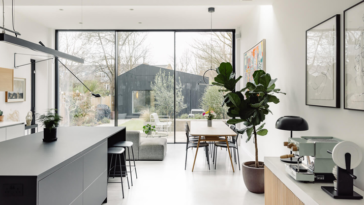 განსაკუთრებულ ყურადღებას იპყრობს ჰორიზონტალური ფანჯარა სამზარეულოს წინსაფრის ზემოთ, რომელიც შესაძლებელს ხდის ბუნებასთან კავშირის ქონას საკვების მზადების პროცესშიც კი.