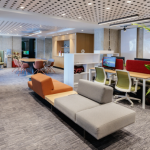 რაც შეეხება სველ წერტილებს, სახლის საერთო ინტერიერისგან განსხვავებით, მათი ფერთა გამა ბევრად გამოხატული და მკვეთრია. აბაზანაში არსებული დიდი ზომის ფანჯარა კი გარკვეულწილად შლის ზღვარს ინტერიერსა და ექსტერიერს შორის და ეზოს საშხაპეს მოგვაგონებს.