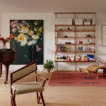 ახალი L ფორმის კაბინეტი, რომელიც თეთრი მუხის მასალით არის გაფორმებული, ოფიციალურ და არაფორმალურ საცხოვრებელ სივრცეებს ჰყოფს.