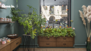 ინტერიერში გამოყენებული შიშველი ბეტონისა და ხის კომბინაცია სივრცეს განსაკუთრებულ იერსახეს სძენს. ფანჯრების სიმრავლე, გარდა ოთახების შუქით ავსებისა, თვალწარმტაც ბუნებასთან განსაკუთრებული სიახლოვის შეგრძნების საშუალებას იძლევა.