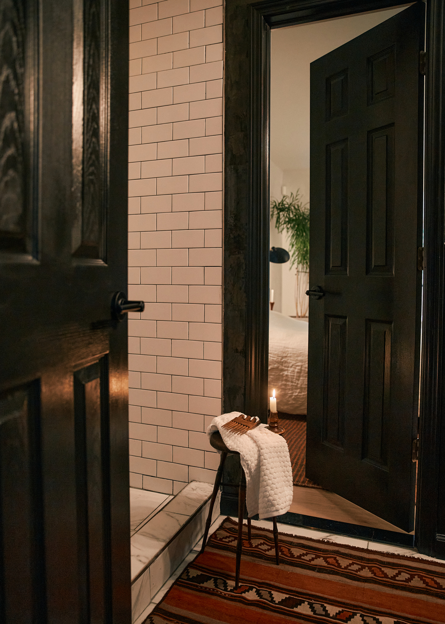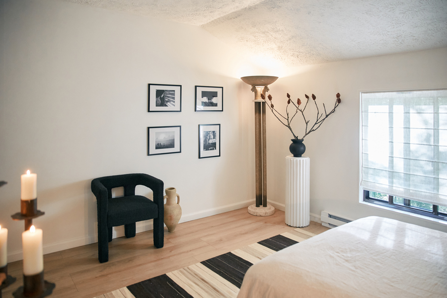 სახლის ზოგიერთ ნაწილში დეკორატიული ლესვაა გამოყენებული, მათ შორის დიზაინერისა და მისი მეგობრის, Kerry Lessard-ის ხელითაა მოპირკეთებული საძინებლის კედლები. ერთ-ერთი საძინებელი ე.წ. დედამიწის ტონებშია გაფორმებული. ხაკისფერი, შავი და თეთრი ფერები იდეალურ და მყუდრო გარემოს ქმნის, რომელშიც სასიამოვნო განწყობას იგრძნობა. მსუბუქი განათება კი ინტიმურსა და მშვიდს ხდის სივრცეს. აღსანიშნავია ელენე კირვალიძის ნახატიც, რომელიც შემოსასვლელ კედელს ამშვენებს და გამორჩეულ ატმოსფეროს განაპირობებს.