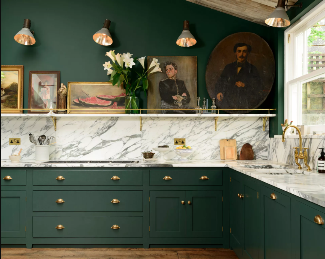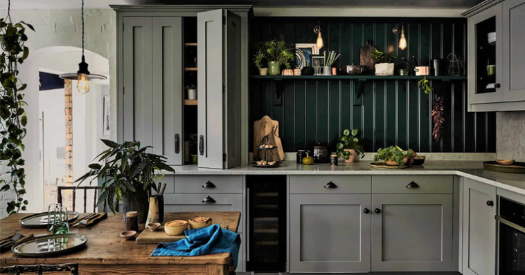 ინგლისურ სტილში შესრულებულ სამზარეულოს ნელსაცხებლების მინის ქილები, სპილენძის ტაფები და ჩაიდნები, კალათები, თიხის ქილები და რა თქმა უნდა, ღია თაროებსა და კარადებში გამოფენილი ფაიფური ბრწყინვალედ შეავსებს.
