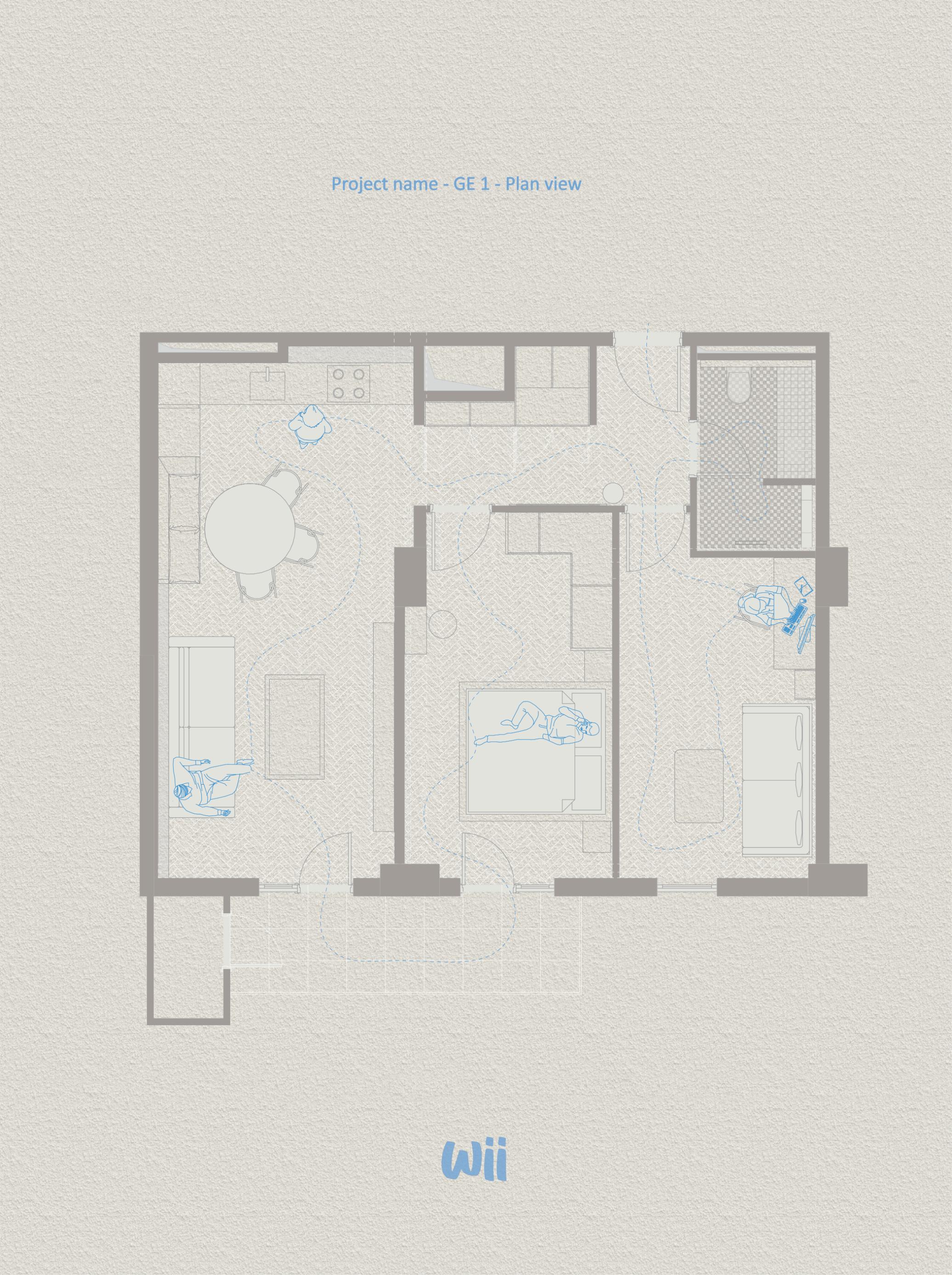 Wii Design Studio-ს მიერ შესრულებული საცხოვრებელი პროექტი მირცხულავას ქუჩაზე – „GE 1“ 70 კვადრატულ მეტრზეა განლაგებული და ემსახურება დიზაინ-ფილოსოფიას, რომლის მიხედვით ინტერიერი არა ვიზუალური ეფექტისთვის, არამედ ყოველდღიური ცხოვრებისათვის იქმნება. სივრცის კონცეფცია თავიდანვე ჩამოყალიბდა როგორც მშვიდი, დაბალანსებული და დროში მდგრადი გარემო, რომელიც საბოლოო სახეს არა დეკორატიული ჟესტებით, არამედ მობინადრის ცხოვრებითა და პირადი ნივთებით იძენს. თბილი ხის ზედაპირები, რბილად არეკლილი ბუნებრივი სინათლე და ფრთხილად შერჩეული ობიექტები ქმნის ინტერიერს, რომელიც დროთა განმავლობაში ივსება და საკუთარ იდენტობას თანდათან აყალიბებს.