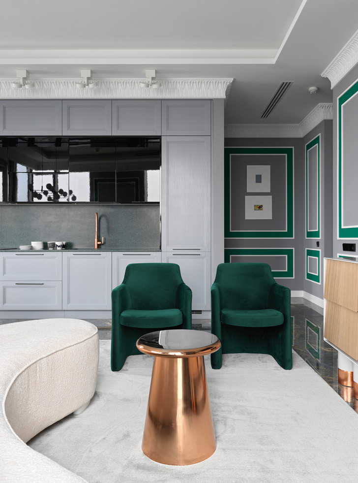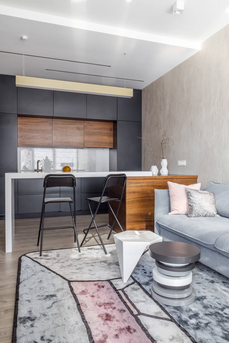 ანტი ტრენდი: უამრავი ფენა და რთული დეტალები. თუმცა, თუ სიმაღლე საშუალებას გაძლევთ, შეგიძლიათ სამზარეულოში ან მისაღებში ჭერი ოდნავ დაადაბლოთ, რათა სივრცის ვიზუალური ზონირების ეფექტს მიაღწიოთ.