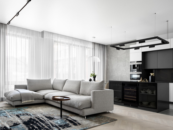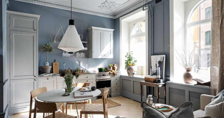 სამზარეულოსა და მისაღებ ოთახში ყოველთვის არის საჭირო ნივთების შესანახი სივრცეები. დიზაინერები გვირჩევენ, რომ სივრცის განცდის შესანარჩუნებლად რაც შეიძლება მეტი ფარული ავეჯი გამოვიყენოთ. უმჯობესია კარადების ფასადები კედლების ფერში იყოს. აქცენტი შეიძლება სამზარეულოს კუნძულზე ან სასადილო მაგიდაზე გაკეთდეს. სტუმრების მისაღებად მყუდრო ადგილის შექმნა ადვილია ორი დივნის ან წყვილი სავარძლის დახმარებით.