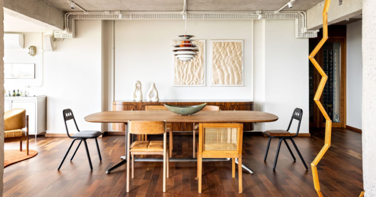 სასადილო ოთახი ერთ-ერთი აივნის ხარჯზე გაფართოვდა. ახლა ეს სივრცე წარმოადგენს მოსასვენებელი ოთახისა და ბარის ნაზავს, რომელიც ხანგრძლივი საუბრებისთვის იდეალურ გარემოს ქმნის.