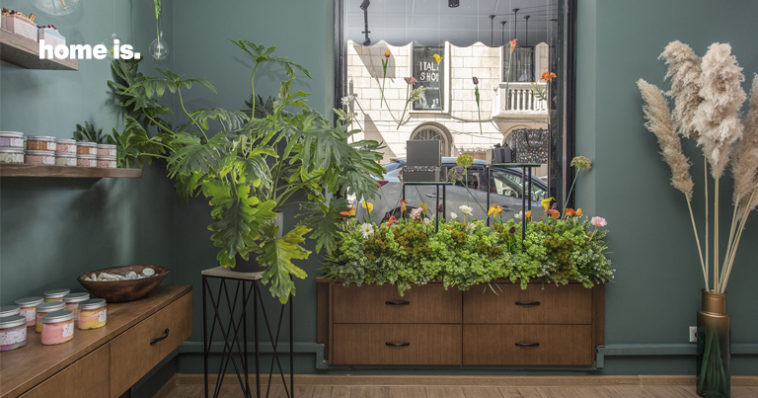 ბუნების მოტივები ინტერიერში – “საპონერიას” შოურუმის დიზაინი არაყიშვილის ქუჩაზე