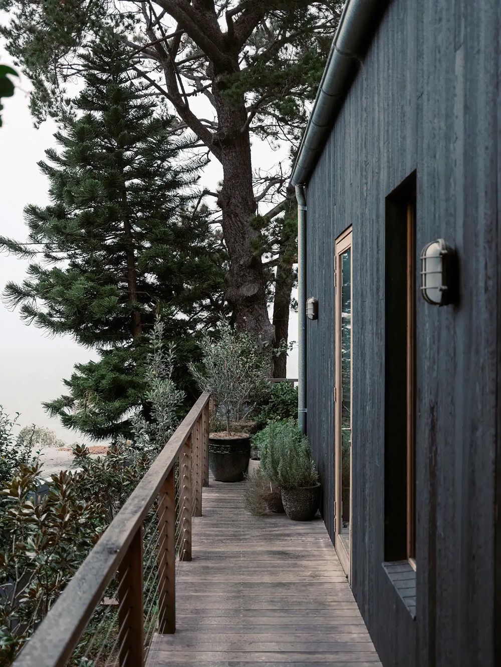 ინტერიერის ესთეტიკა ეფუძნება სიმშვიდესა და ბუნებრივ ბალანსს. პროექტში დომინირებს ხის თბილი ტექსტურა, ღია ფერის კედლები, ქვისა და ბეტონის ელემენტები, რომლებიც სივრცეს სიღრმესა და სტრუქტურას სძენს. მასალების არჩევანი მიზანმიმართულად არის მიმართული ბუნებრივ გარემოსთან ჰარმონიის შესაქმნელად — ინტერიერი არ ეჯიბრება ლანდშაფტს, არამედ ავსებს და ხაზს უსვამს მის სილამაზეს.