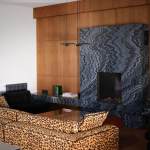 ინტერიერი სპეციალურად შექმნილი კიბის დიზაინის გარშემოა მოწყობილი. აქვეა ბუხარი და მუქი ფერის, თანამედროვე და დახვეწილი ავეჯი. ამ სახის დიზაინი სახლს განსაკუთრებულ ხასიათს სძენს და ოთახებში სინათლისა და დახვეწილობის ეფექტს ქმნის.