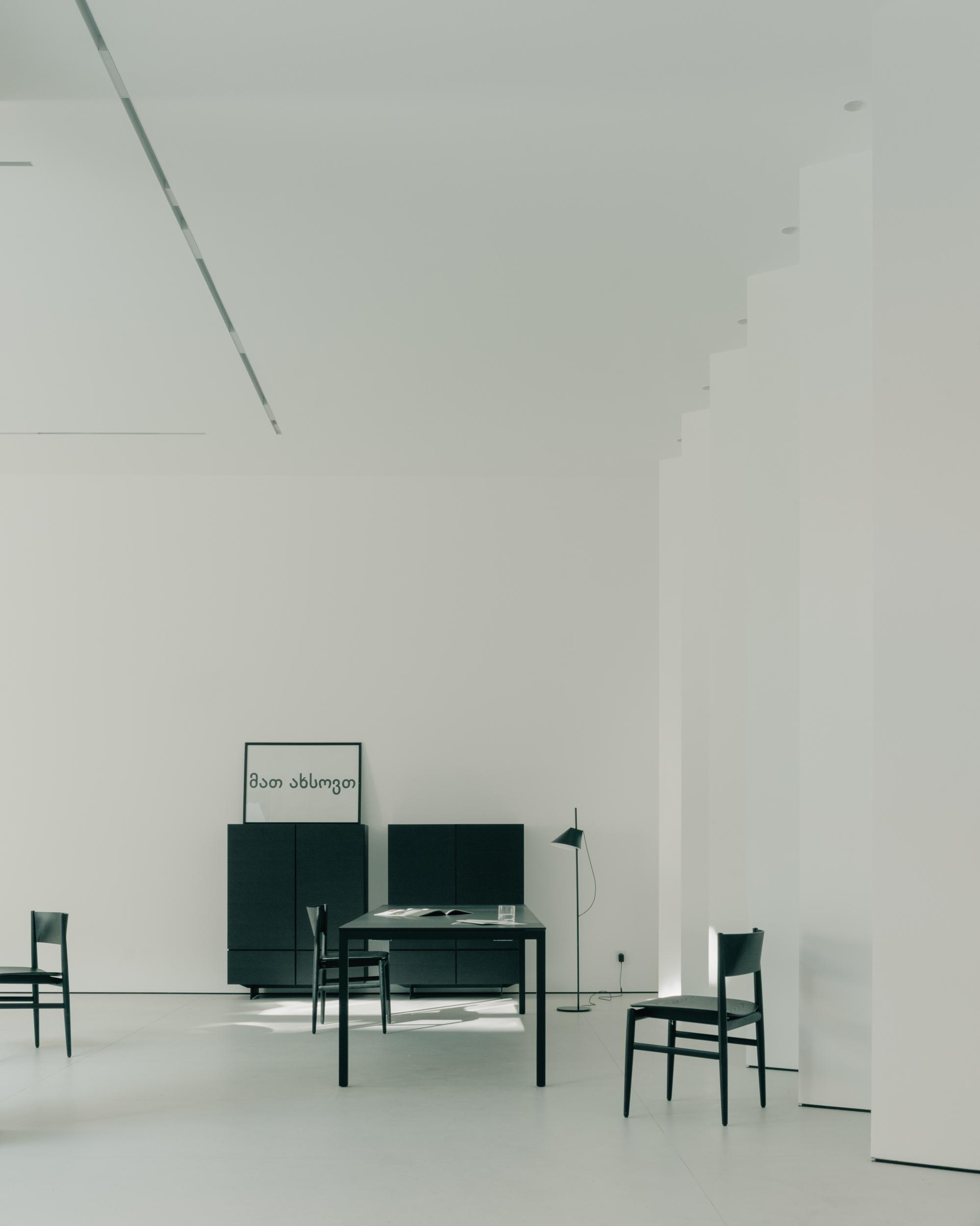 შენობის უკანა ნაწილი სამ სართულზე ვითარდება, ქუჩის მხრიდან კი ის ერთსართულიანი მოცულობის შთაბეჭდილებას ტოვებს, რაც სივრცეში დინამიკურ და მრავალშრიან სტრუქტურას ქმნის და ინტერიერს დამატებით სიღრმეს ანიჭებს.