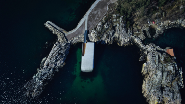 ოკეანესთან მდგარი სახლის არქტექტურა ძალიან საინტერესოდ არის კლდესთან დაკავშირებული. თითქოს ავსებს მის ნაწილებს, ამ ყველაფერს კი მინის მიერ მინიჭებული ჰაეროვნება და გამჭვირვალობა ეხმარება.
