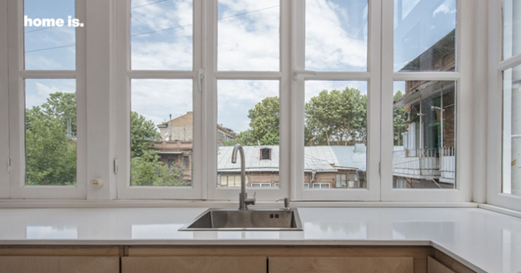 საპროექტო დავალების მიხედვით, არსებული ფართიდან უნდა მიღებულიყო დამოუკიდებელი სამზარეულო და მისაღები, ასევე საძინებლი დამოუკიდებელი აბაზანით. სწორედ ამ ამოცანის შესასრულებლად პროექტის ავტორებმა განახორციელეს ბინის გეგმარების ცვლილება, რის შედეგადაც თბილისური სახლებისთვის დამახასიათებელ შუშაბანდში განთავსდა სამზარეულო, რომელიც სინათლის სიჭარბით გამოირჩევა. აქვე გხვდება მკაფიო ლურჯი ფერის იატაკი, რომელიც სახლის თანამედროვე ელემენტს წარმოადგენს.