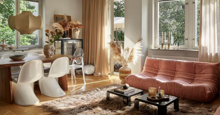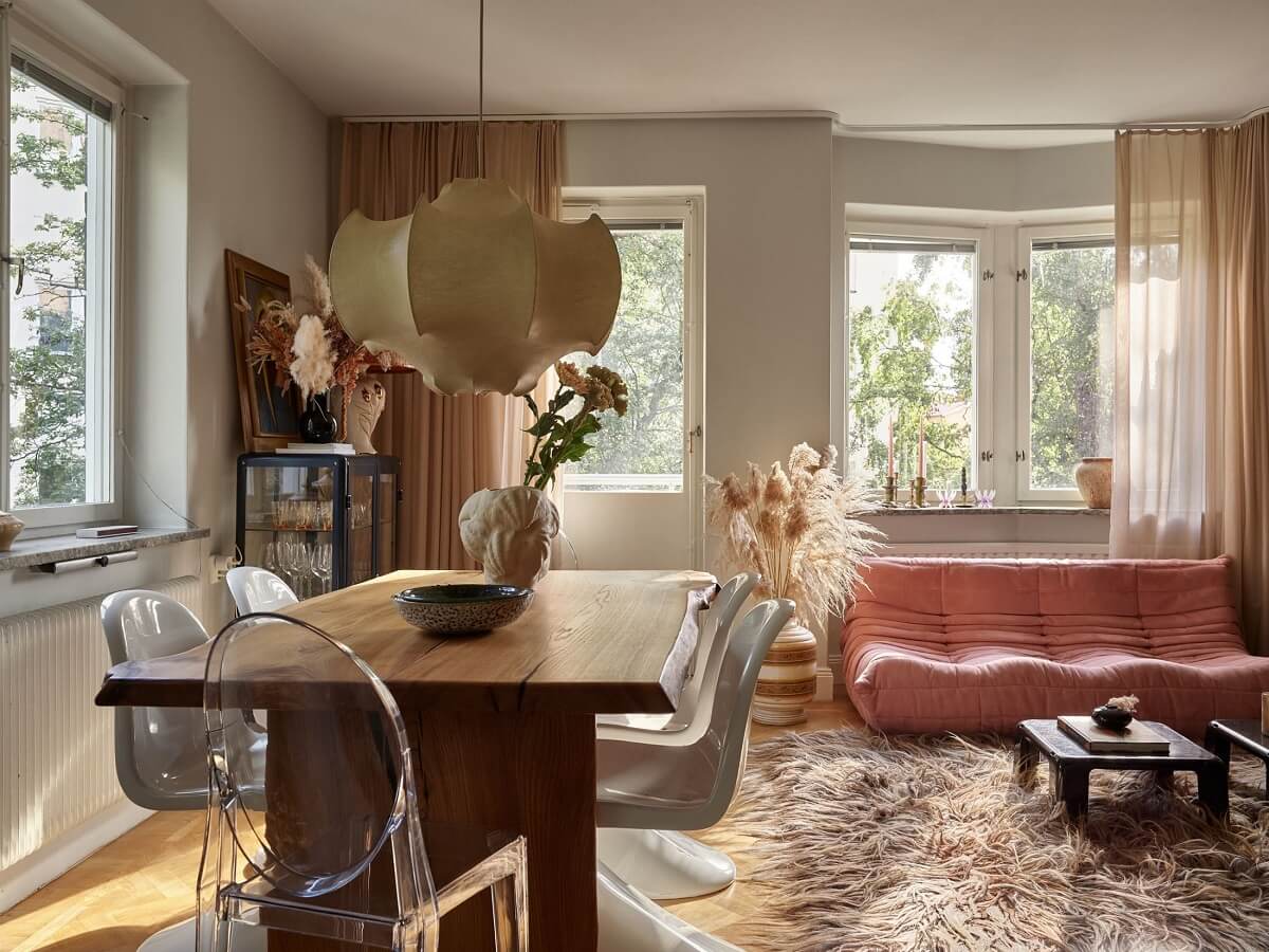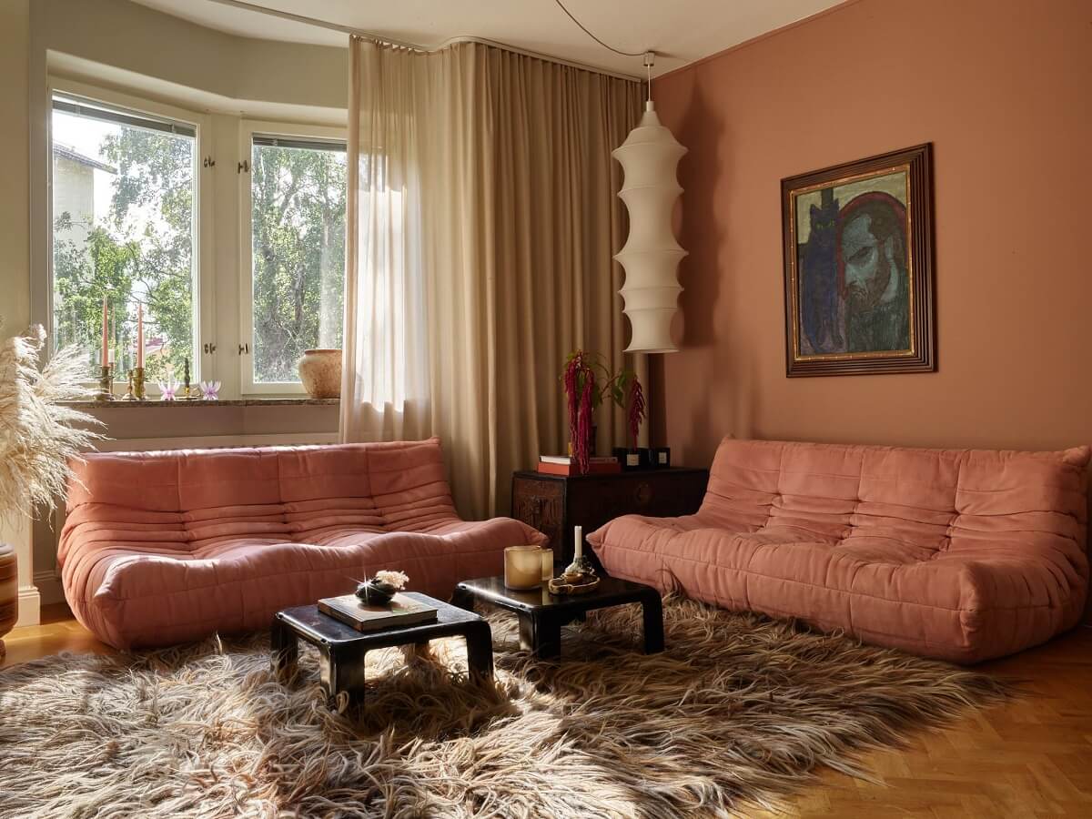 შვედური აპარტამენტი მოვარდისფრო ტონებში