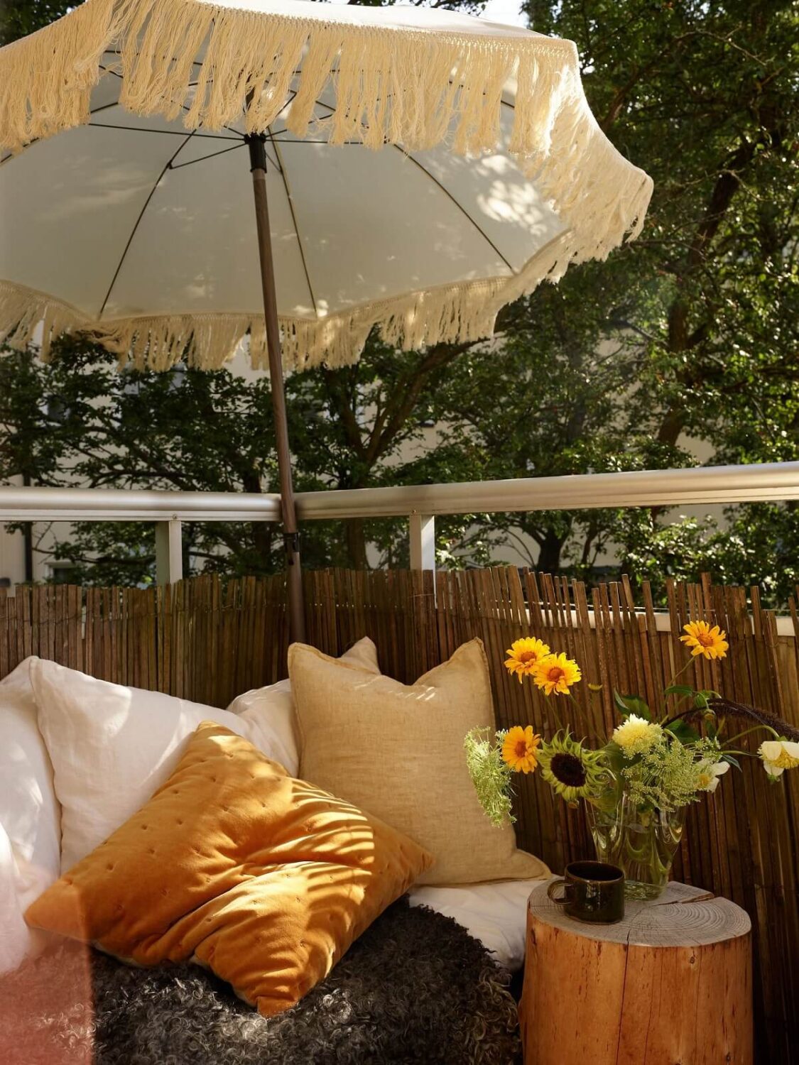 სახლს აქვს პატარა ბაღიც, სადაც მაგიდა, დივნები და დასვენებისთვის საჭირო სხვა ნივთებია განლაგებული.