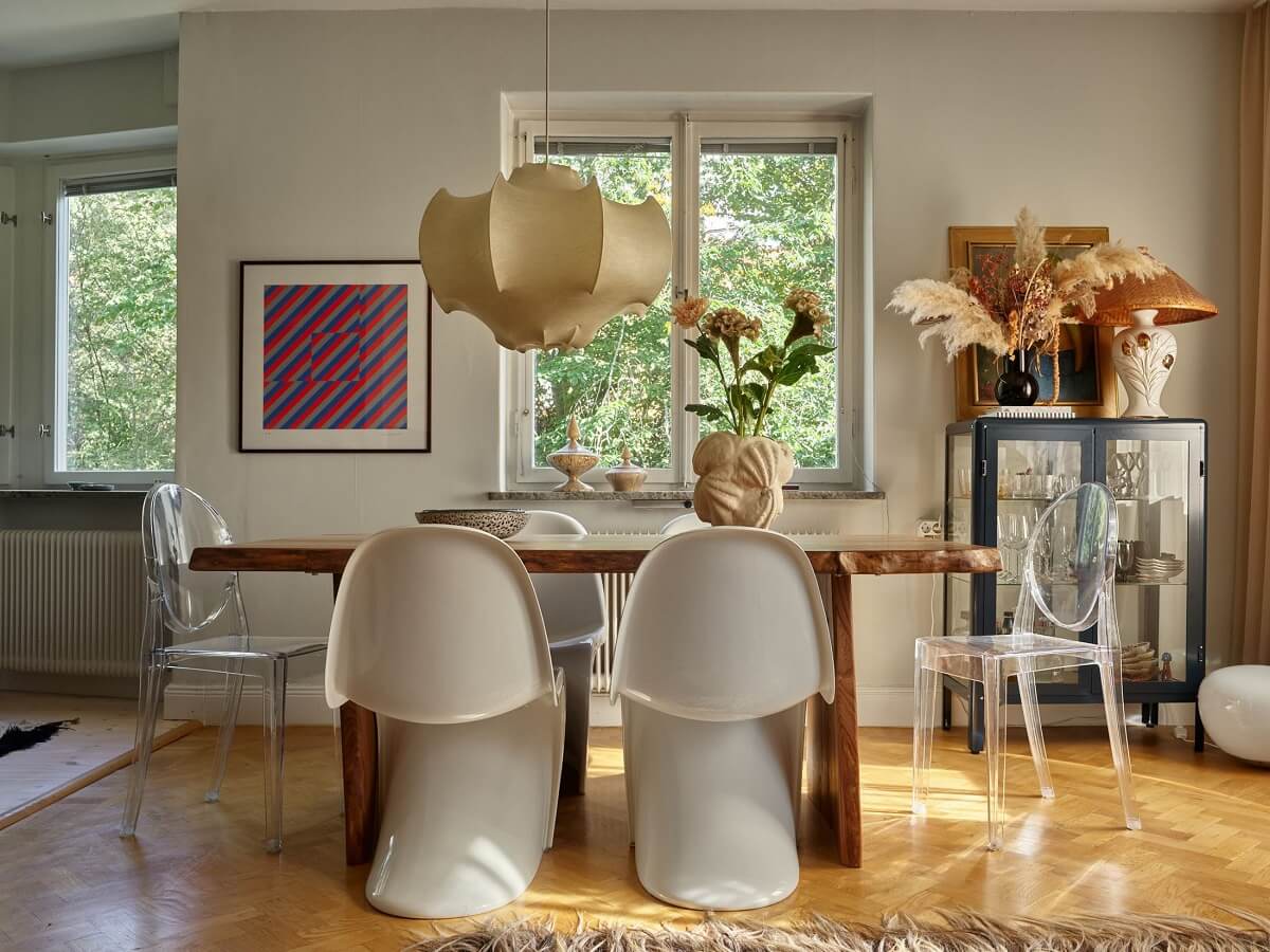 სტოკჰოლმში მდებარე ეს აპარტამენტი 57 კვადრატული მეტრია, თუმცა მისი ინტერიერის წყალობით, ის ბევრად უფრო დიდი ზომის ჩანს. სივრცის დიზაინი ბოლო რამდენიმე წლის განმავლობაში სრულად შეიცვალა, მისაღები და სამზარეულო, მეპატრონის სურვილის გათვალისწინებით, გაერთიანდა და დამატებითი სივრცე შექმნა, ხოლო ფერებისა და ავეჯის სწორად შერჩევის ხარჯზე, ინტერიერი შედარებით უფრო ნათელი და დახვეწილი გახდა.