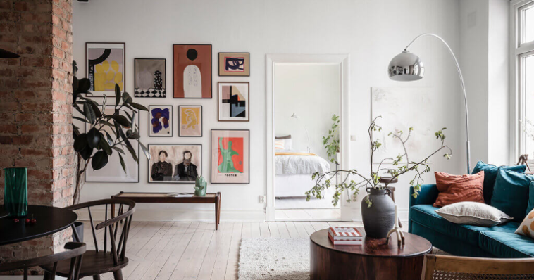 ეს საუცხოო ბინა შვედეთში მდებარეობს. დიდი ფანჯრები სივრცეს ბუნებრივი განათებით ავსებს, ფერადი ავეჯი და ხელოვნების ნიმუშები მას განსაკუთრებულ ხიბლს სძენს, ხოლო შიშველი აგურის კედლებს მეტი სითბო და სიმყუდროვე შემოაქვს.