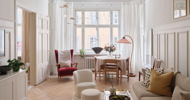 აპარტამენტი, რომელიც დახვეწილი, სკანდინავიური სტილითაა გამორჩეული, სტოკჰოლმში მდებარეობს და მისი ინტერიერი გასულ წელს შეიცვალა. მცირე ცვლილებების მიუხედავად, მეპატრონემ გადაწყვიტა, სახლის ძველი ხასიათი და ტრადიციული ელემენტები შეენარჩუნებინა და XX საუკუნის სტილს თანამედროვე დეტალები შემატა, როგორებიცაა მაგალითად, მინის კარი, მდიდრული, ელექტრო ბუხარი და სხვა პრემიუმ-კლასის ტექნიკა.