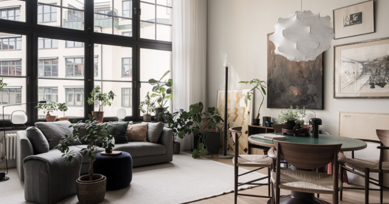 ეს პატარა ლოფტი 69 კვადრატული მეტრია და სტოკჰოლმში, ყოფილი ქარხნის შენობაში მდებარეობს. იგი გამორჩეულია არა მხოლოდ მშვენიერი ინდუსტრიული სივრცით, არამედ თანამედროვე დეკორით. ფერთა სისტემა მკაცრი და ნეიტრალურია – თეთრი ბაზა კარგ კონტრასტს ქმნის შავ ფანჯრებისა და ავეჯის მუქი ფერებისთვის. ამავდროულად, სტილს ძირითადად განსაზღვრავს ოსტატურად შერჩეული პლაკატებისა და ნახატებისგან შექმნილი კედლის გალერეები და სხვადასხვა სტილის ჩარჩოები.