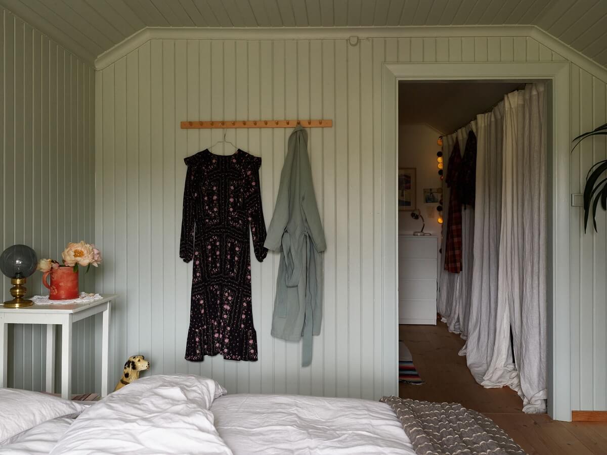 ორი საძინებელი განთავსებულია ზედა სართულის მოპირდაპირე მხარეს, გარშემორტყმულია სხვენით და კარადებით. ერთ ოთახს აქვს პანელის კედლები და ჭერი, ხოლო მეორეში შეხვდებით შეღებილ კედლებსა და ჭერს.