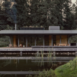 დახვეწილი არქიტექტურული ნაგებობა ტბის დაჭაობებულ ნაპირზე