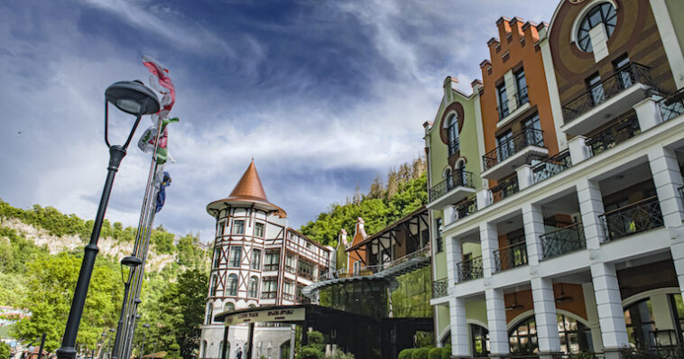 ბევრი საინტერესო, მაღალი დონის ობიექტი აქვს შექმნილი სტუდია 9-ს, თუმცა, ალბათ, ბორჯომის სასტუმროთი (Crown Plaza Borjomi) უნდა დავიწყო, რადგან ის ერთ-ერთი მნიშვნელოვანია ჩვენ მიერ განხორციელებულ პროექტებში. მაშინ, როცა ამ სასტუმროზე მუშაობა დავიწყე, აქტიურად დავდიოდი ჩეხეთში, ქალაქ კარლოვი-ვარში, რომელიც ძალიან ჰგავს ბორჯომს. იმ ქალაქზე სულ ვფიქრობდი და ხანდახან იქიდან წამოსული თვითმფრინავში ვხატავდი კიდეც მის ქუჩებს. საბოლოო ჯამში, ამ ქალაქზე იმდენი ინფორმაცია მივიღე, რომ ბორჯომის სასტუმრო მას დავუკავშირე და მდინარის პირას რამდენიმე შენობა გავაშენე.