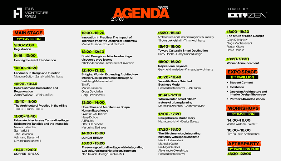 თბილისის არქიტექტურული ფორუმი 2025 გაიმართება 27 სექტემბერს, ექსპო ჯორჯია, პავილიონი 11.