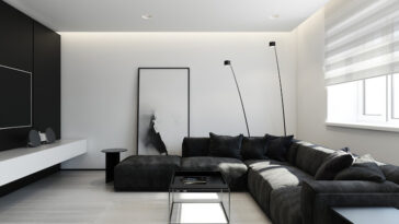 ეს მისაღები ოთახის გაფორმებისთვის კიდევ ერთი მომგებიანი კომბინაციაა. ტერაკოტას თბილ ფერებთან ერთად შავი არც თუ ისე პირქუში ჩანს, რაც ინტერიერს ელეგანტურობას ანიჭებს.