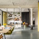 ლოფტის სტილის ბინა ყვითელი აქცენტებით