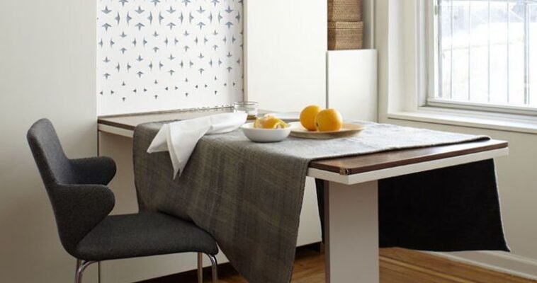 ალბათ მრავალი გადმოსაშლელი საწოლი გინახავთ, რომელიც კედელზეა დამაგრებული – ამ შემთხვევაში მსგავსი ტიპის სასადილო მაგიდა უნდა შემოგთავაზოთ, რომელიც საერთოდ არ იკავებს სივრცეს და ძალიან კომპაქტურია.