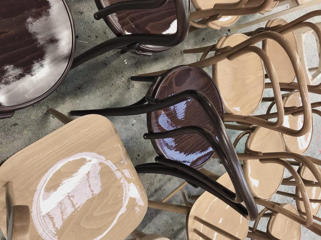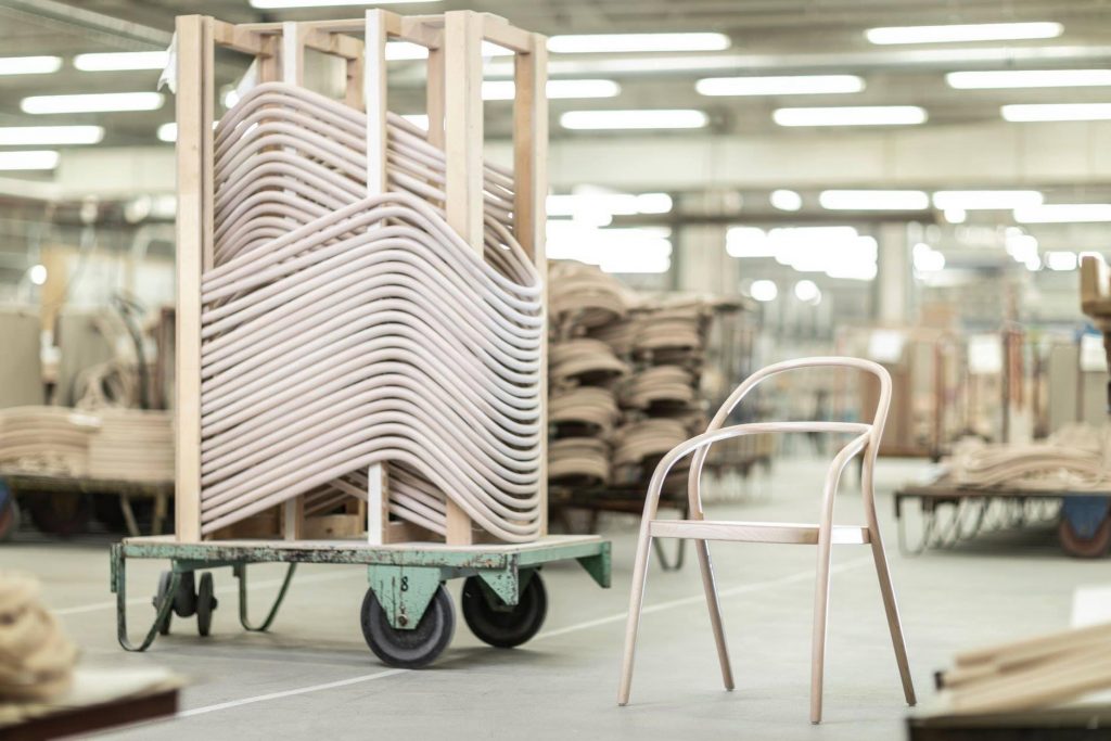 ძალიან მარტივია შექმნა ერთი განსაკუთრებული დიზაინის მქონე სკამი, მაგრამ მისი შემდგომ მასიური წარმოება დღევანდელი განვითარებული სამყაროსთვისაც საკმაოდ რთული პროცესია. ეს გამოწვევა გერმანელმა დიზაინერმა მიხაილ ტონეტმა მე-18 საუკუნის ბოლოს დაძლია. ტონეტის საოჯახო ბიზნესი (The Thonet Family Firm) აწარმოებდა ხის ფრაგმენტებს ორთქლის ტექნიკით, რაც სხვადასხვა დიზაინის შექმნას ხის დაგრეხვით ხდიდა შესაძლებელს. ეს ყველაფერი ნიშნავდა, რომ ტონეტს იმ დროისთვის შეეძლო მასიურად ეწარმოებინა თავისი დიზაინით შექმნილი, ლამაზად დაგრეხილი ხის ავეჯი  ნაკლები დანახარჯებით და მცირე დროში. ამ მეთოდებმა იგი შემდგომში კიდევ უფრო ცნობილი გახადა. როდესაც ტონეტის პროდუქცია ქალაქ კობლენცის ავეჯის გამოფენაზე გამოჩნდა, ამ ყველაფერმა ავსტრიის კანცლერის ყურადღება მიიპყრო და მისი რეკომენდაციით, დიზაინერი უკვე ვენაში გაემგზავრა საკუთარი ფირმის გასახსნელად, რომელსაც Thonet Söhne დაარქვა.