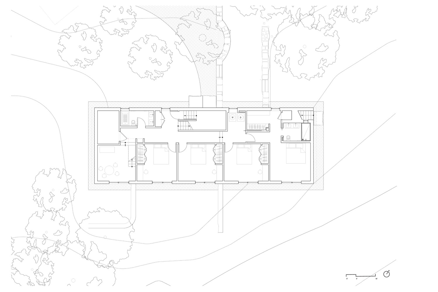 ოთახების დაგეგმვის დროს, არქიტექტორებმა სახლის მეპატრონეების სურვილების გათვალისწინებით იმოქმედეს. მათ ორი გზა ჰქონდათ ასარჩევად: ან საძინებელი და აბაზანა მესამე სართულზე უნდა ყოფილიყო, რაც ტყის ხედებით ზემოდან ტკბობის შესაძლებლობას იძლეოდა, ან პირიქით – პირველ სართულზე, რათა ოთახები ტყისა და მდელოს სილამაზით ყოფილიყო გარშემორტყმული. საბოლოოდ, არჩევანი პირველ სართულზე შეჩერდა.