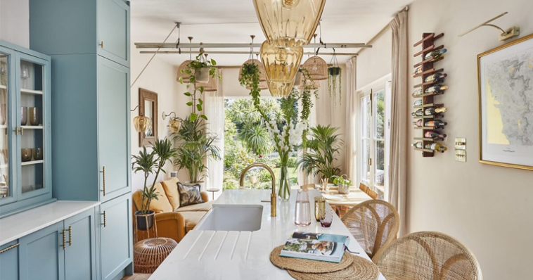 ინტერიერში მრავლად გვხვდება მცენარეები და მათი უმრავლესობა ჭერზეა დაკიდებული, რაც სივრცეს ნამდვილად გამორჩეულ იერს სძენს. ამას გარდა, სახლი ჰარმონიულად უკავშირდება შიდა ეზოს, სადაც სამზარეულოს გავლით მოხვედრაა შესაძლებელი.