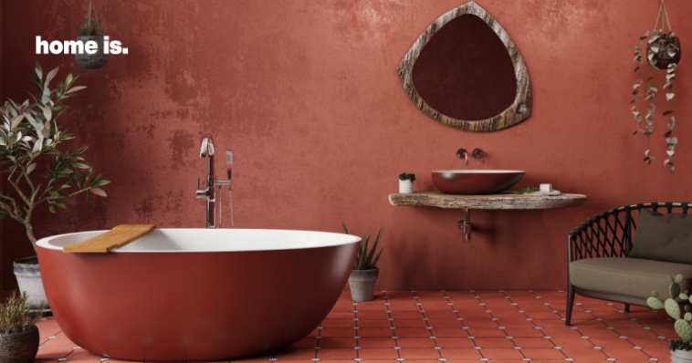 წითელი ინტენსიური და ძალიან დახვეწილი ფერია, თუმცა ამავდროულად საკმაოდ მკვეთრი და თამამიც. აბაზანაში წითელი შეგვიძლია გამოვიყენოთ როგორც საერთო ფონი ინტერიერისთვის ან აქცენტი, რომელიც საინტერესო კონტრასტს ქმნის ავეჯისა და ტექნიკის ფერებთან. საერთო განწყობის შესაქმნელად შესანიშნავი გზაა წითელი ფერის კერამიკული ფილების შერჩევა, ან კედლების მოხატვა. აღსანიშნავია, რომ სააბაზანოში ამ ტონს იშვიათად იყენებენ, რადგან ის ენერგიასთან ასოცირდება და მიიჩნევა, რომ მისი გამოყენებით მშვიდი და კომფორტული ატმოსფეროს შექმნა საკმაოდ რთულია.