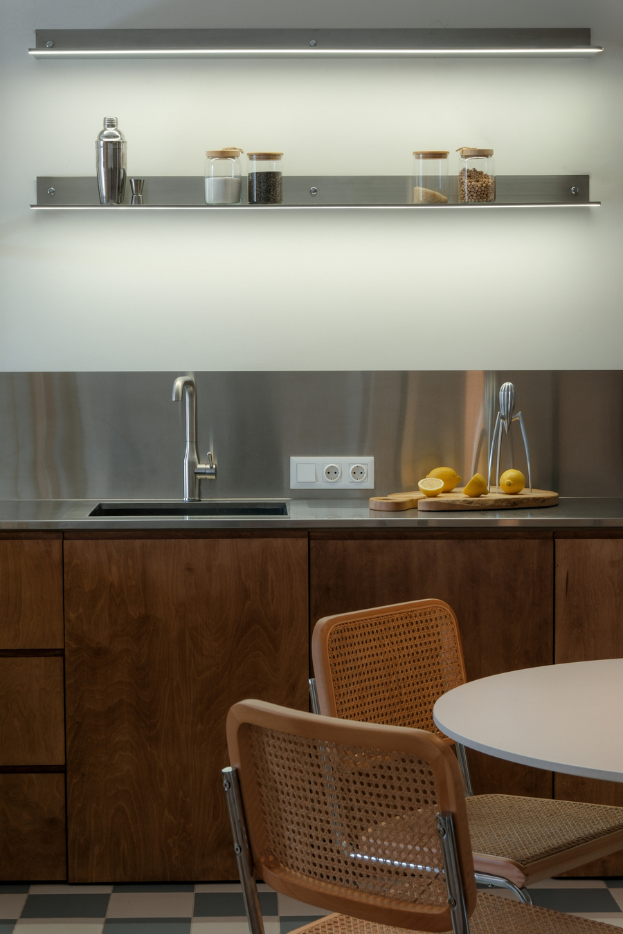 უჟანგავი ფოლადი უკვე დიდი ხანია გასცდა მხოლოდ პროფესიონალური სამზარეულოების ჩარჩოებს და თანამედროვე საცხოვრებელ ინტერიერებშიც დამკვიდრდა, როგორც პრაქტიკული, გამძლე და ვიზუალურად საინტერესო მასალა. მისი მთავარი უპირატესობა არის ჰიგიენურობა, მარტივი მოვლა, ტენიანობისა და მაღალი ტემპერატურის მიმართ გამძლეობა, რაც სამზარეულოსთვის განსაკუთრებით მნიშვნელოვანია. ამასთან ერთად, ფოლადის ცივი, ტექნოლოგიური იერი იდეალურად ერწყმის ბუნებრივ მასალებს — ხეს, ქვას, ტექსტილს — და ქმნის დაბალანსებულ, დახვეწილ გარემოს. საქართველოში სულ უფრო ხშირად ვხვდებით პროექტებს, სადაც უჟანგავი ფოლადი ინტერიერის მთავარ ელემენტად გვევლინება და თანამედროვე ცხოვრების სტილს გამოხატავს. სწორედ ასეთ პროექტებზე გიამბობთ დღევანდელ სტატიაში.