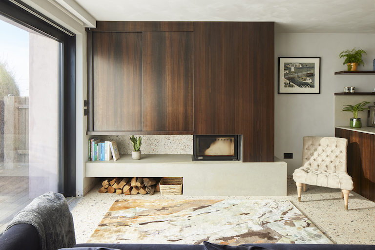 სახლის ინტერიერი, შეიძლება ითქვას, უმეტესწილად ხისგანაა შექმნილი. გვერდულად განთავსებული ფანჯრები კი განსაცვიფრებელი ხედის დანახვის შესაძლებლობას იძლევიან.