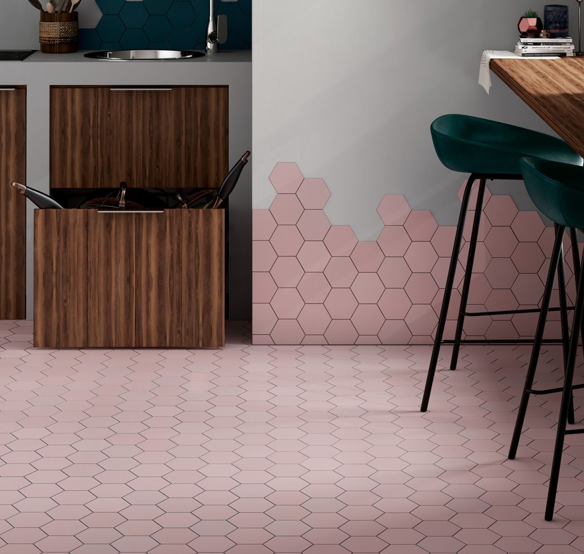 თუ ვარდისფერი ავეჯის სამზარეულოში გამოყენება მაინც არ მიგაჩნიათ პრაქტიკულად, შეგიძლიათ ეს ფერი კედლის ფილებისთვის გამოიყენოთ.