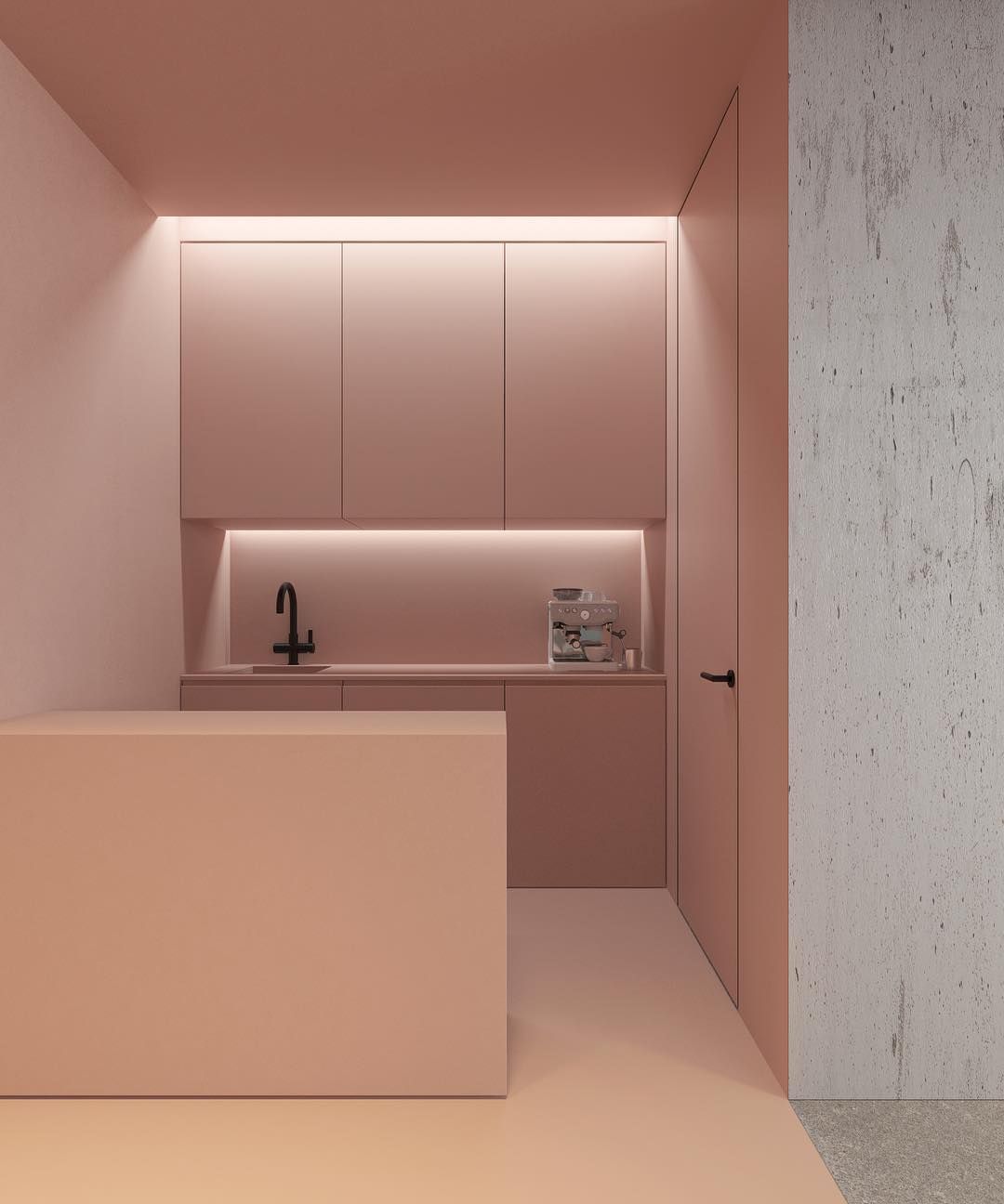 სამზარეულოს ავეჯის ფრად შეგიძლიათ ვარდისფერის რომელიმე ტონალობა შეარჩიოთ. არ არის აუცილებელი “მყვირალა” ვარდისფერზე იფიქროთ. პასტელური ფერი ნებისმიერ სივრცეს დაათბობს.